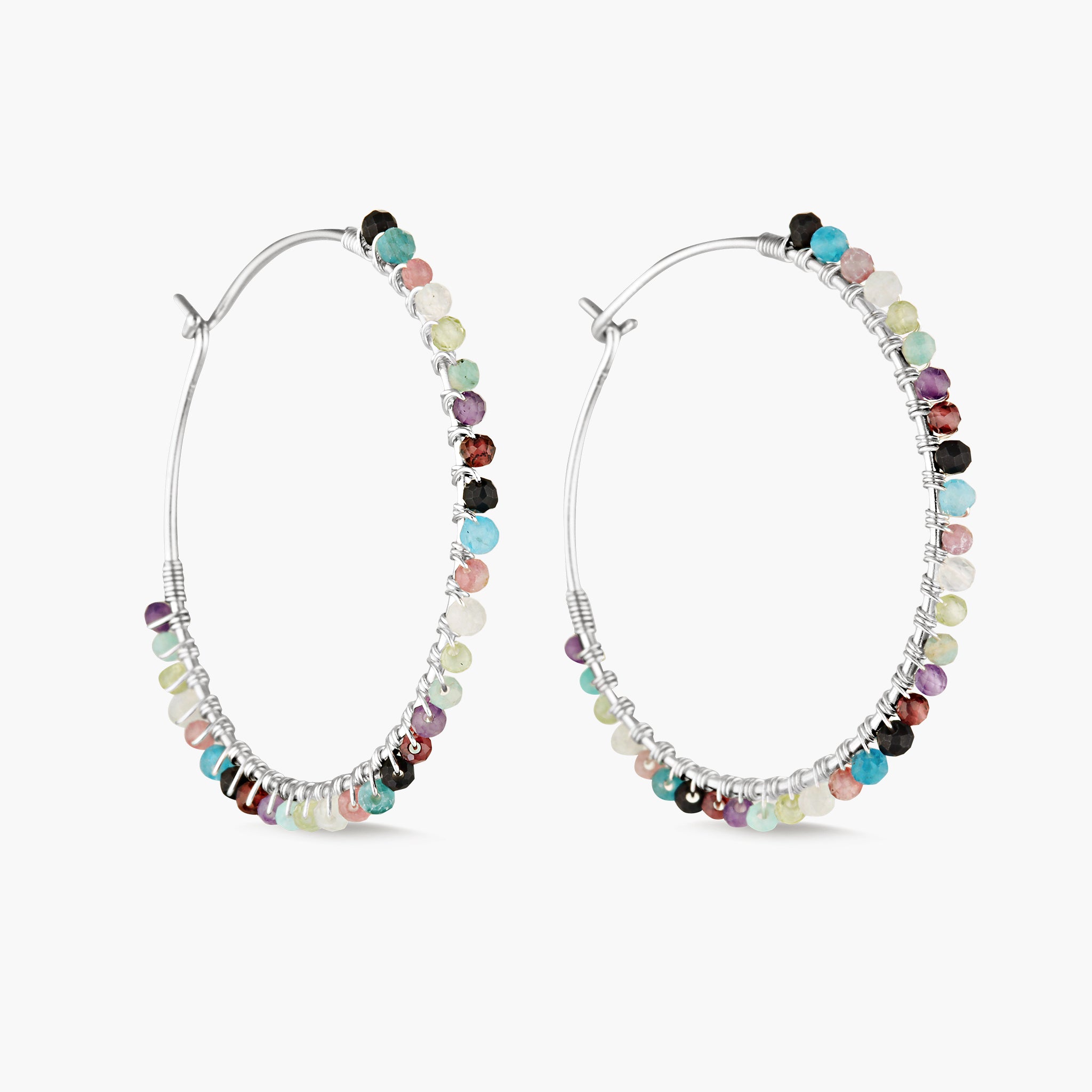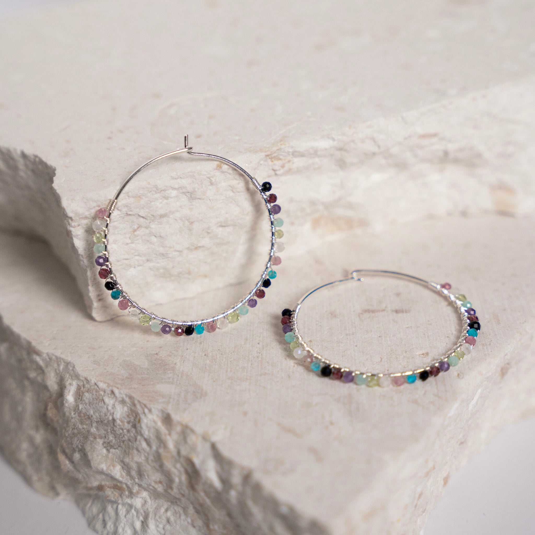 Introducing our Chakra Beaded Hoops—a delicate fusion of sterling silver elegance and the soothing charm of seven different stone beads that represent the seven chakras. Each stone promotes different benefits for the wearer from the heart healing tourmaline to the calming amazonite, these are a sweet and playful addition to your jewellery collection.