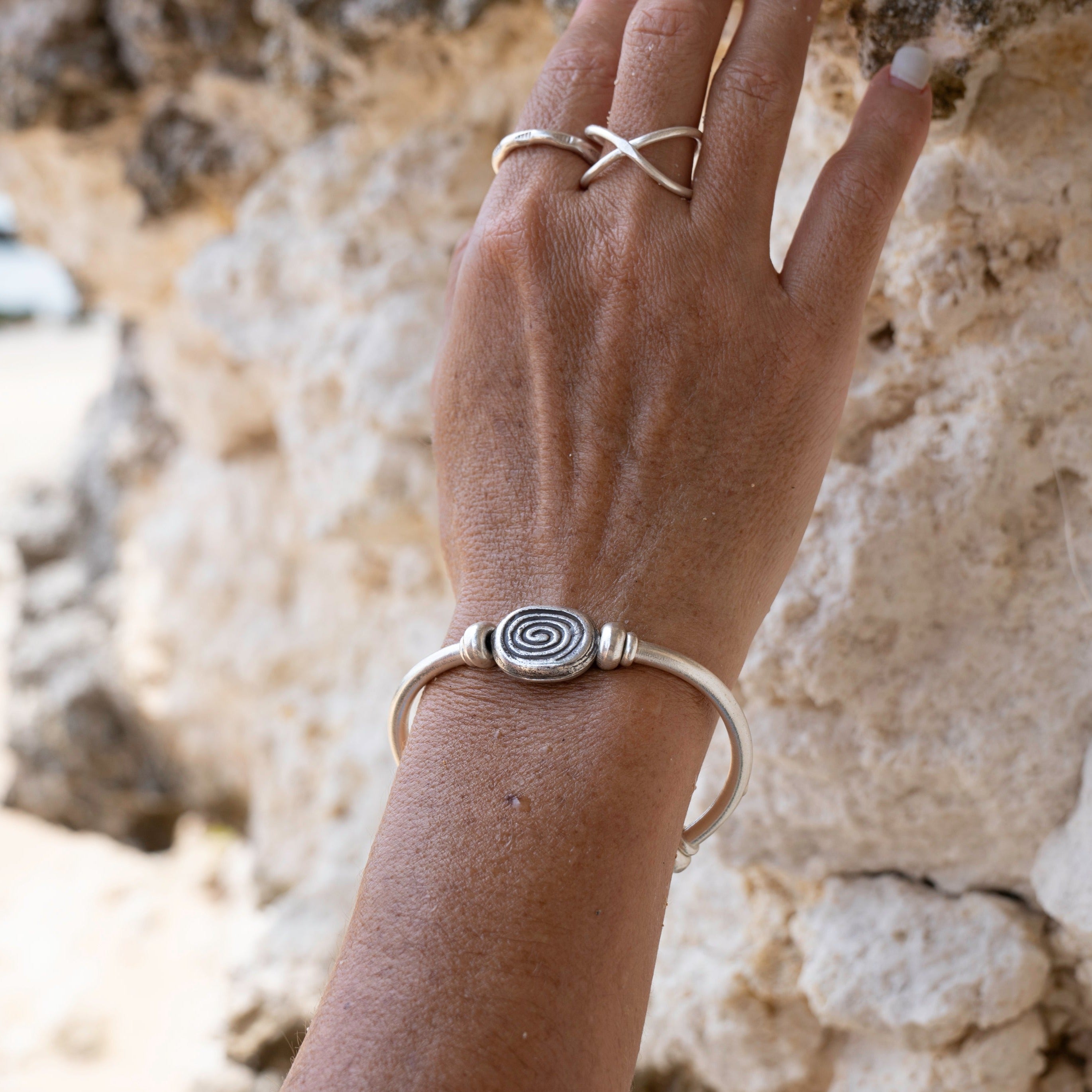 Introducing the Cosmic Spiral Bracelet, a perfect blend of elegance and symbolism. Crafted from Hilltribe silver and set on a durable Polywax thread, this bracelet is designed for both style and longevity. The centrepiece features a striking spiral bead, symbolising growth and life's journey. Secured with a sterling silver parrot clasp, the Cosmic Spiral Bracelet is ideal for the free-spirited woman who appreciates meaningful, high-quality accessories.