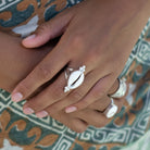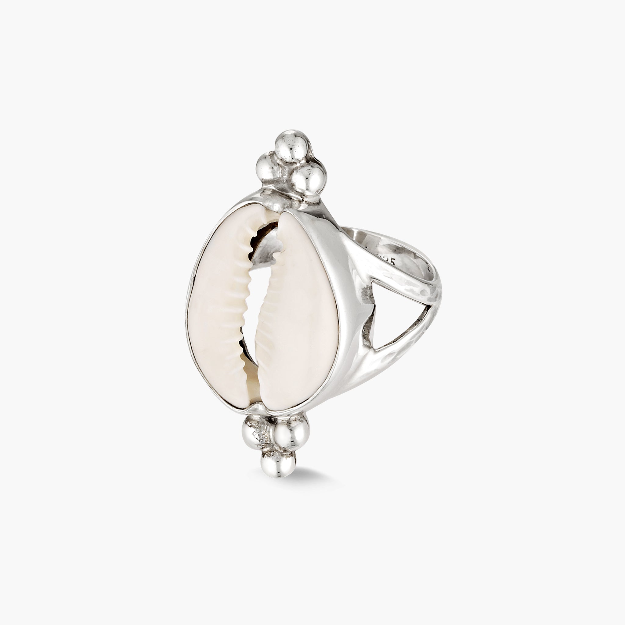 Introducing our Cowrie Hope Ring, a stunning statement piece that embodies natural beauty and elegance. This ring features a large cowrie shell, beautifully set in sterling silver, and complemented by a charming double band design. Perfect for adding a touch of coastal charm to any outfit, the Cowrie Hope Ring is a unique and eye-catching accessory that symbolises hope and connection to the ocean.