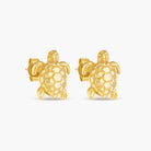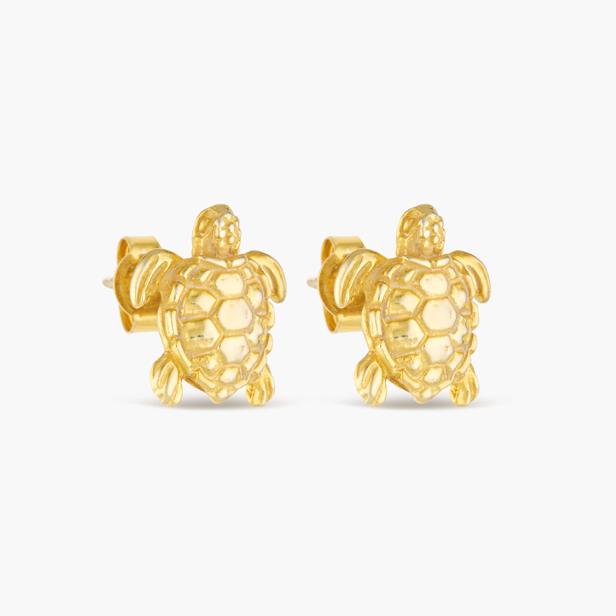 A tiny tribute to the tide. These gold plated sterling silver turtle studs capture the quiet beauty of the ocean’s most gentle wanderer. Polished and petite, they sit softly on the ear — subtle enough for everyday, yet meaningful in their symbolism of protection, longevity and calm. A little piece of the sea, worn close.