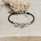 The highlight of this bracelet is the trio of pendants: a Hamsa, an Om and a Sun. The Hamsa pendant, an ancient symbol, is believed to bring protection, happiness, and good fortune to the wearer. The open right hand, often with an eye in the centre, is a universal sign of protection against the evil. Accompanying the Hamsa is the Om pendant, representing the sacred sound and spiritual icon in Indian religions, symbolizing the essence of the universe. The Sun pendant adds a touch of radiant energy, symbolising life, vitality and growth.