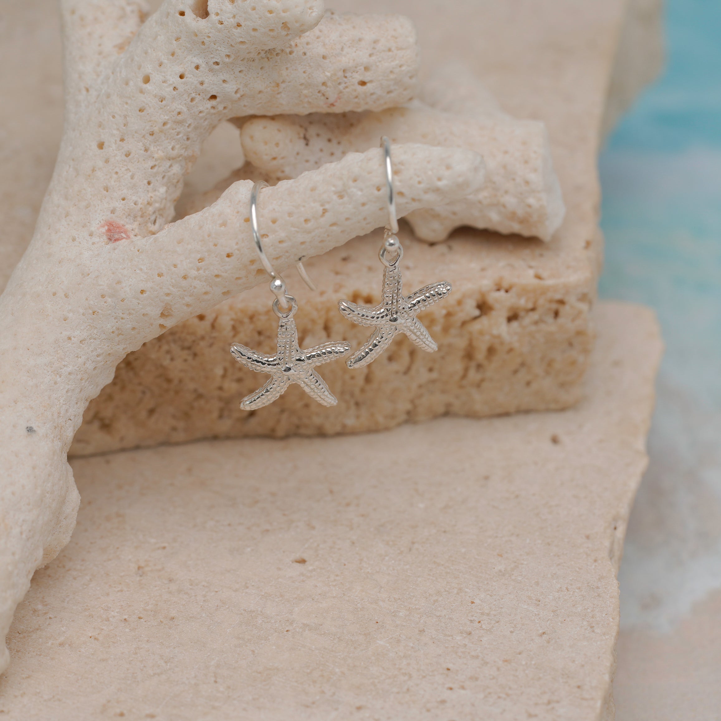 Elevate your coastal style with our Ocean Starfish Drop Earrings. These exquisite earrings are meticulously crafted from high-quality Sterling Silver, showcasing the intricate beauty of starfish from the depths of the ocean. Suspended gracefully from Sterling Silver Ear Hooks, they add a touch of seaside charm to any ensemble.