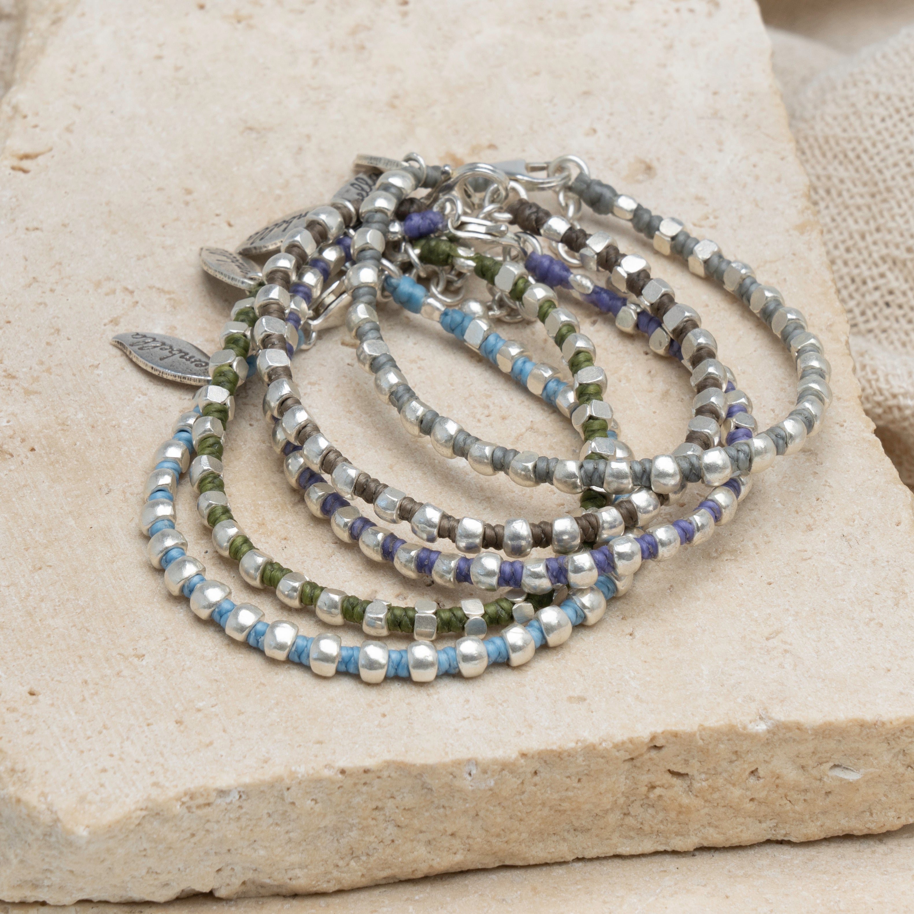 Embrace the serene beauty of the sea with the Ocean Whispers Bracelet. Featuring Hill Tribe silver beads strung on a vibrant grey poly wax chord, this bracelet adds a pop of colour to any outfit. Finished with a sterling silver parrot clasp, it combines elegance with a touch of coastal charm, making it the perfect accessory for ocean lovers. These are durable and ocean safe.