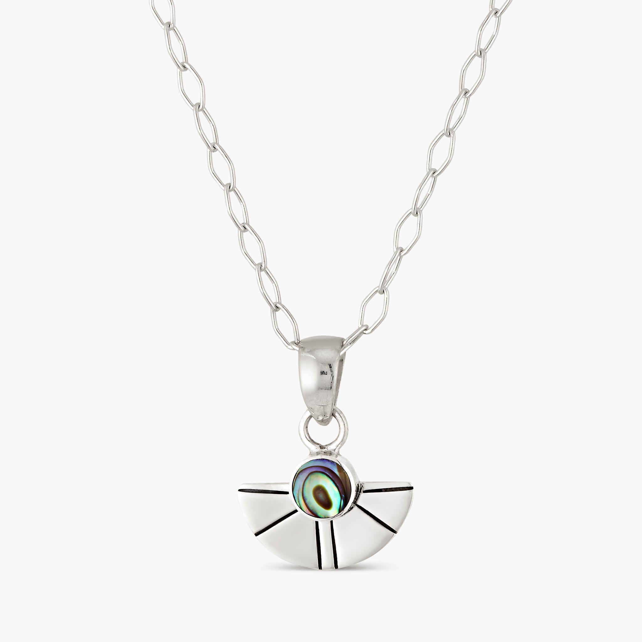 Softly luminous and effortlessly refined, the Paua Eclipse Necklace features a delicate sterling silver chain and our signature eclipse pendant, set with iridescent paua shell framed in sterling silver. The shifting blues and greens of the paua catch the light beautifully, echoing the rhythm of the ocean.