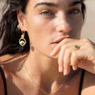 Introducing our Turquoise Nephthys Gold Drops from the all-new Soleil collection, a bold and captivating nod to ancient Egyptian jewellery. These striking earrings are crafted from lightweight, 18k gold-plated stainless steel and feature vibrant turquoise stones. In ancient Egypt, turquoise was cherished for its protective and healing properties, symbolising health, wisdom and spiritual grounding. Embrace the timeless allure and bold beauty of these exquisite earrings from our Soleil collection.