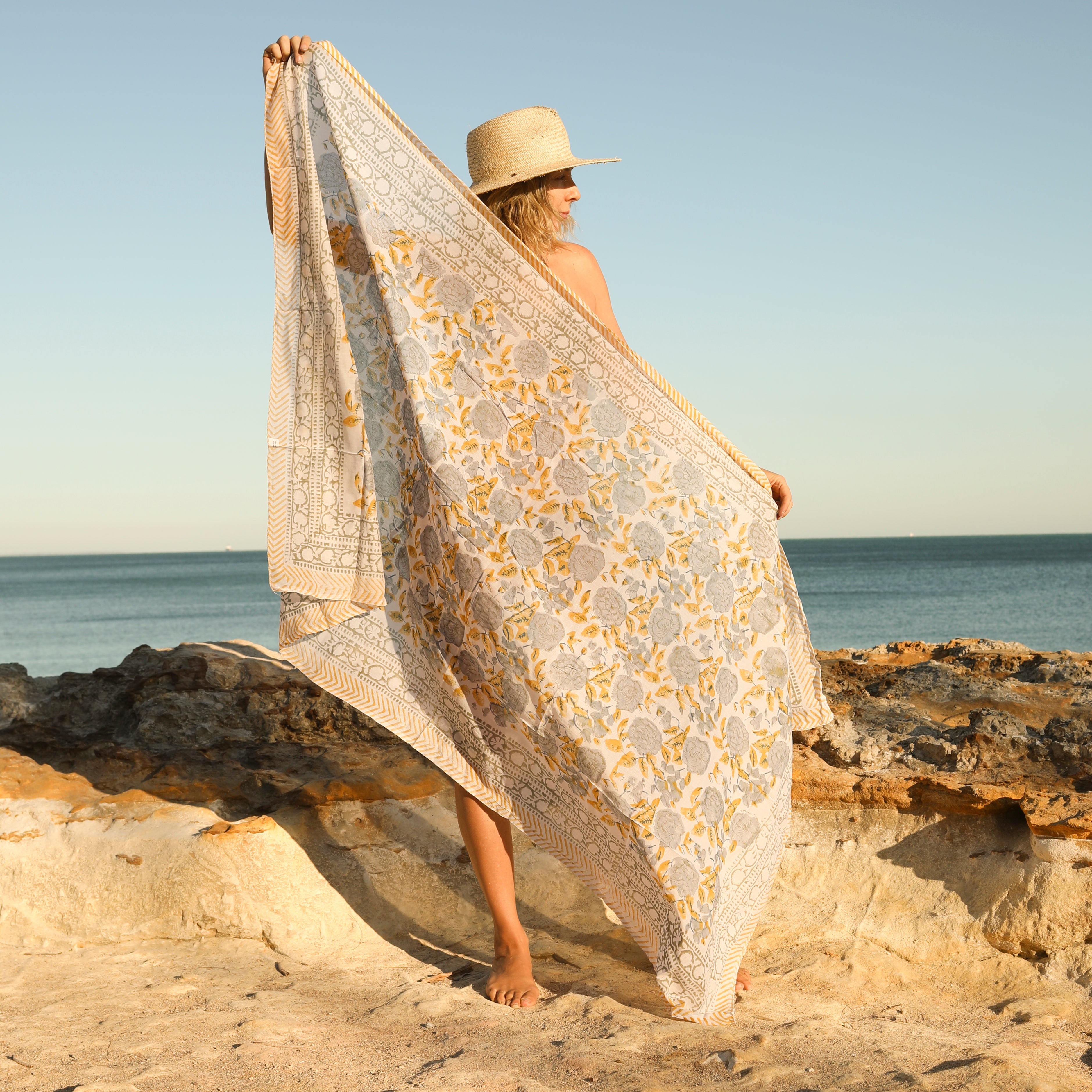 Embella Sarongs are available in a wide variety of designs. These sarongs are multipurpose and can be used as a sarong, couch cover, car seat cover, bed throw, tablecloth, baby swaddle or as a wall hanging - however you would like!