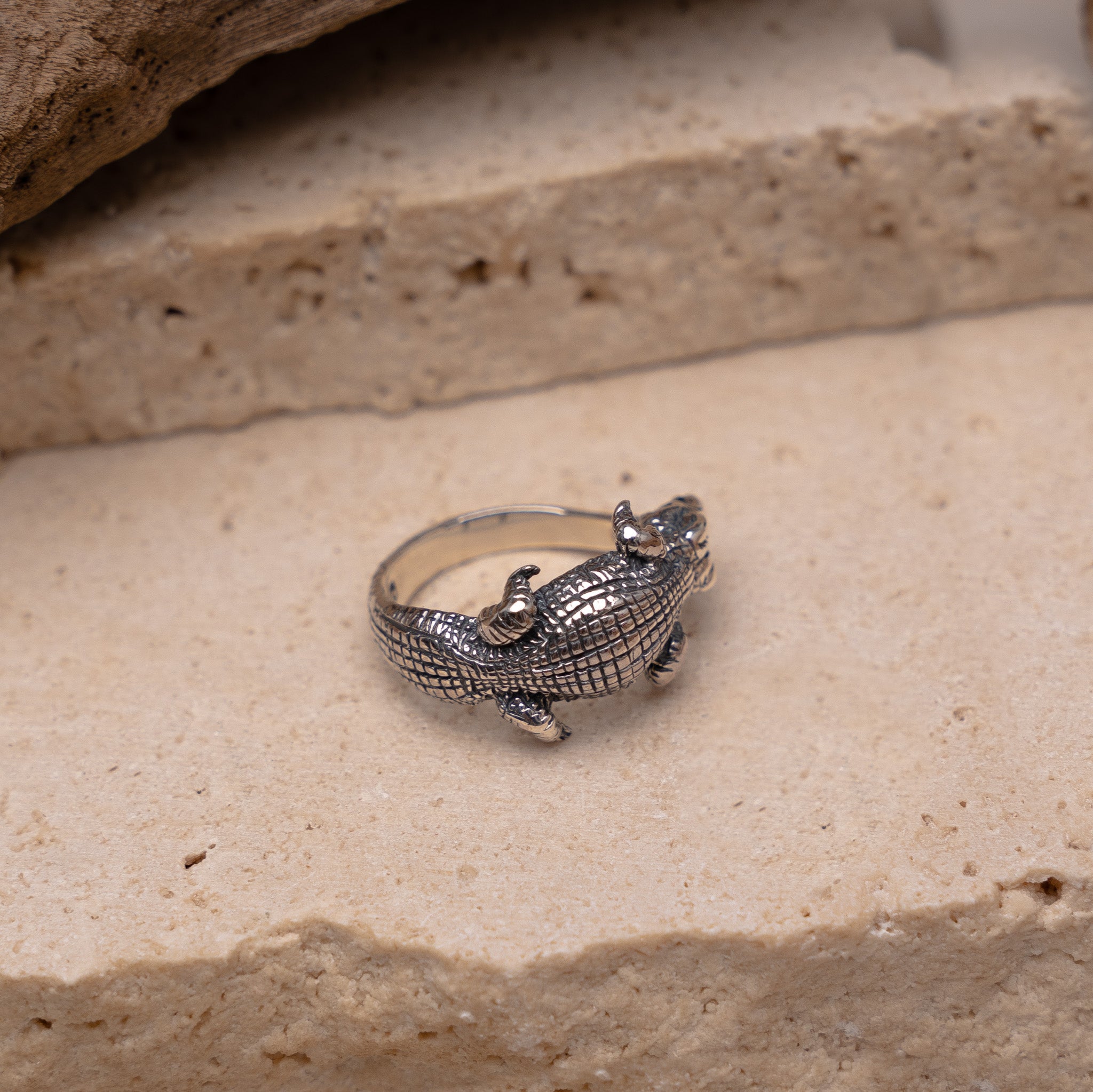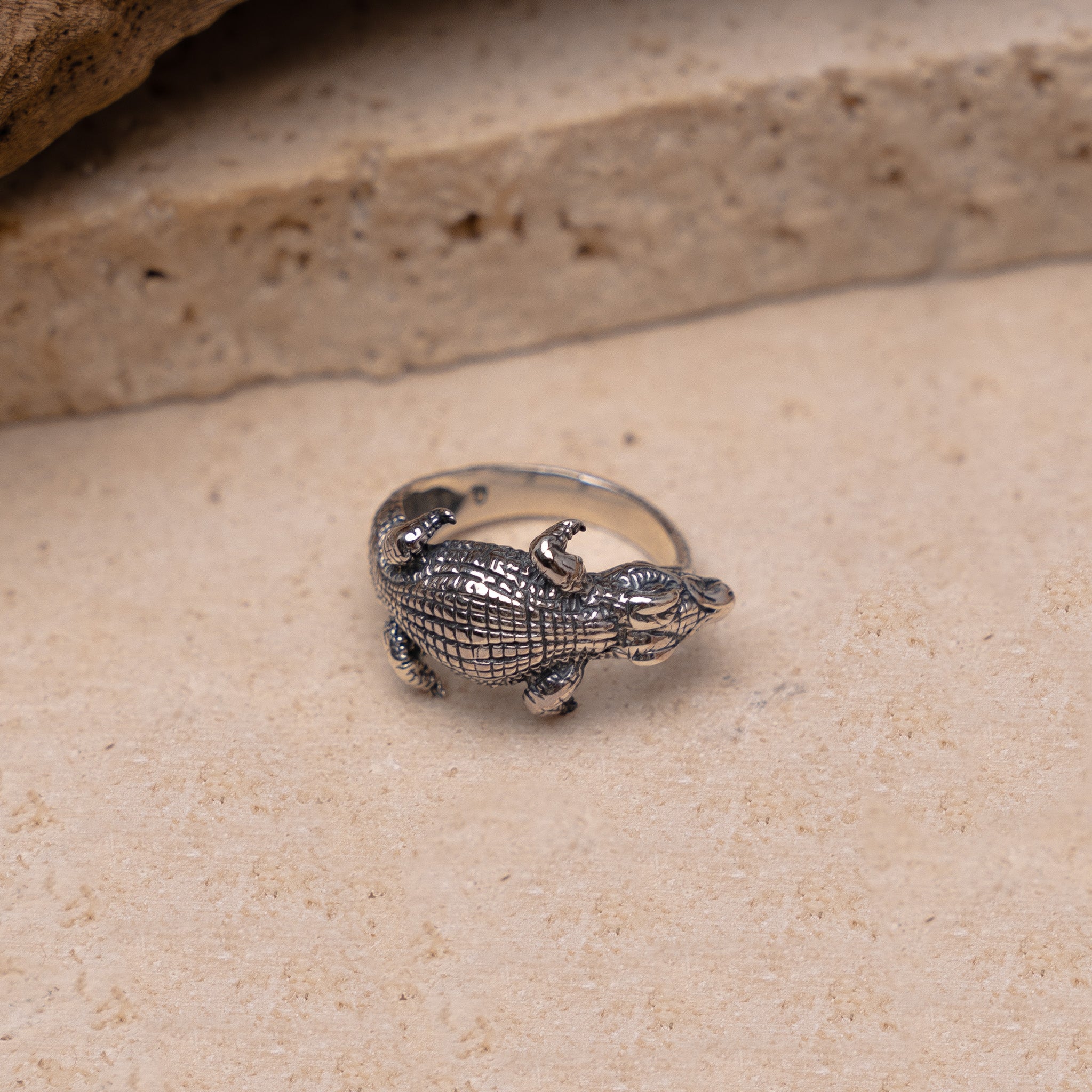 Introducing our "Hunter Crocodile Ring," a symbol of strength and protection crafted in sterling silver. The crocodile, known for its resilience and ancient wisdom, wraps around your finger, serving as a powerful guardian in your journey. This unisex ring embodies the spirit of endurance, making it a unique and meaningful accessory for those who seek strength and security in their style. Elevate your look with this exceptional piece that not only complements your attire but also carries the essence of enduring protection.