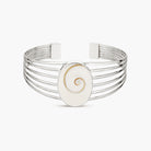 Naturally striking and effortlessly stylish, the Shiva Shores Cuff brings a touch of the ocean to your everyday look. Featuring a Shiva shell set in sterling silver on a three-band silver cuff, each piece is unique, celebrating the beauty of natural materials. Wear it solo or layered for an elevated, organic style that feels timeless and free-spirited.