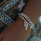 The Evergreen Wrap is a beautifully refined, nature-inspired piece crafted from Hill Tribe silver and adorned with pure silver feather and leaf charms. This versatile piece can be worn as a necklace, bracelet, or anklet, depending on how you choose to wrap it. Its effortless design captures the essence of the natural world, offering a sophisticated yet relaxed style perfect for any occasion. Whether layered or worn alone, the Evergreen Wrap brings a touch of elegance and tranquillity to your everyday look.