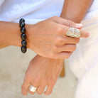 Powerful and protective, the Shungite Protection Beads are crafted from polished, oversized shungite stones — a mineral renowned for its ability to neutralise negative energy and shield against electromagnetic frequencies (EMFs). Believed to restore balance and promote wellbeing, this bold bracelet is as functional as it is beautiful. Strung for comfort, it’s perfect worn solo as a statement or layered with your everyday favourites for extra strength and style.