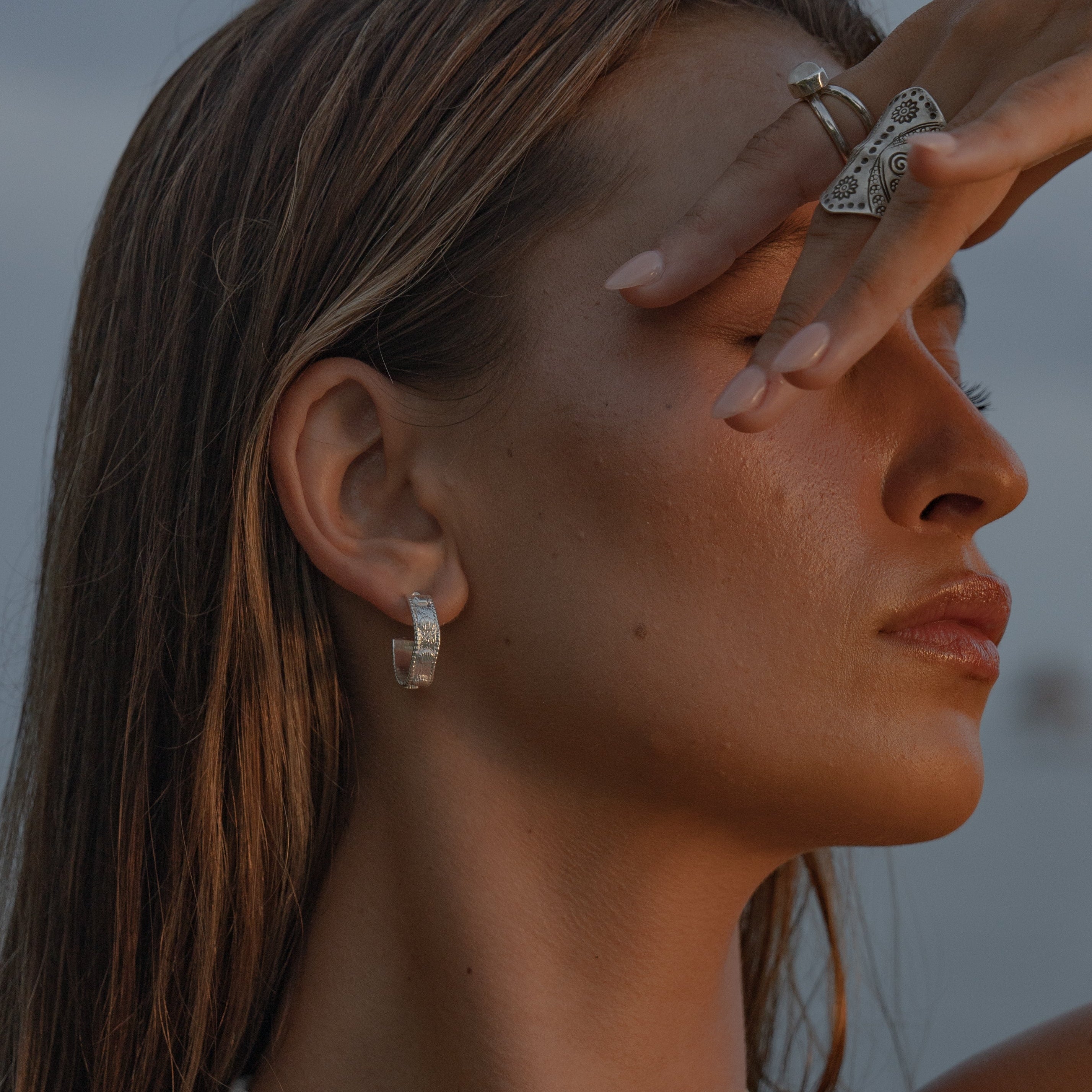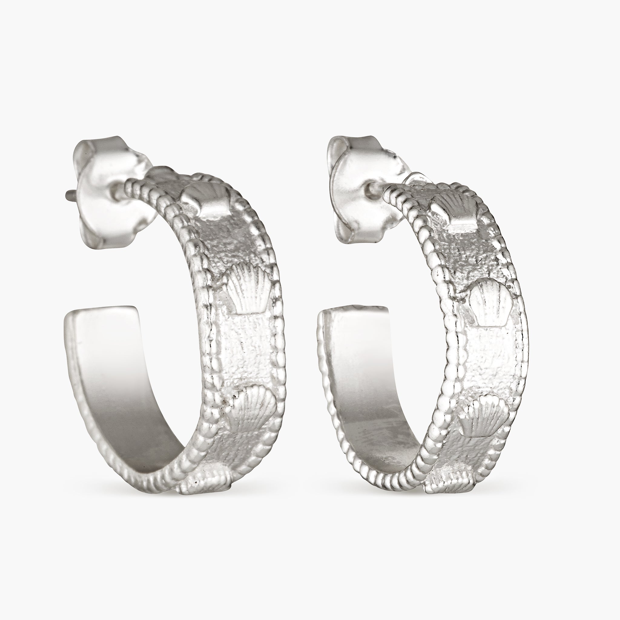 Ancient craft reimagined for the everyday. Our Silver Shoreline Hoops are crafted in sterling silver and detailed with delicate shell charms — a playful nod to the sea. Lightweight and versatile, they’re made to wander with you, from sandy shores to city streets. Pair them with the matching Silver Shoreline Bangle for a look that feels both timeless and free-spirited.
