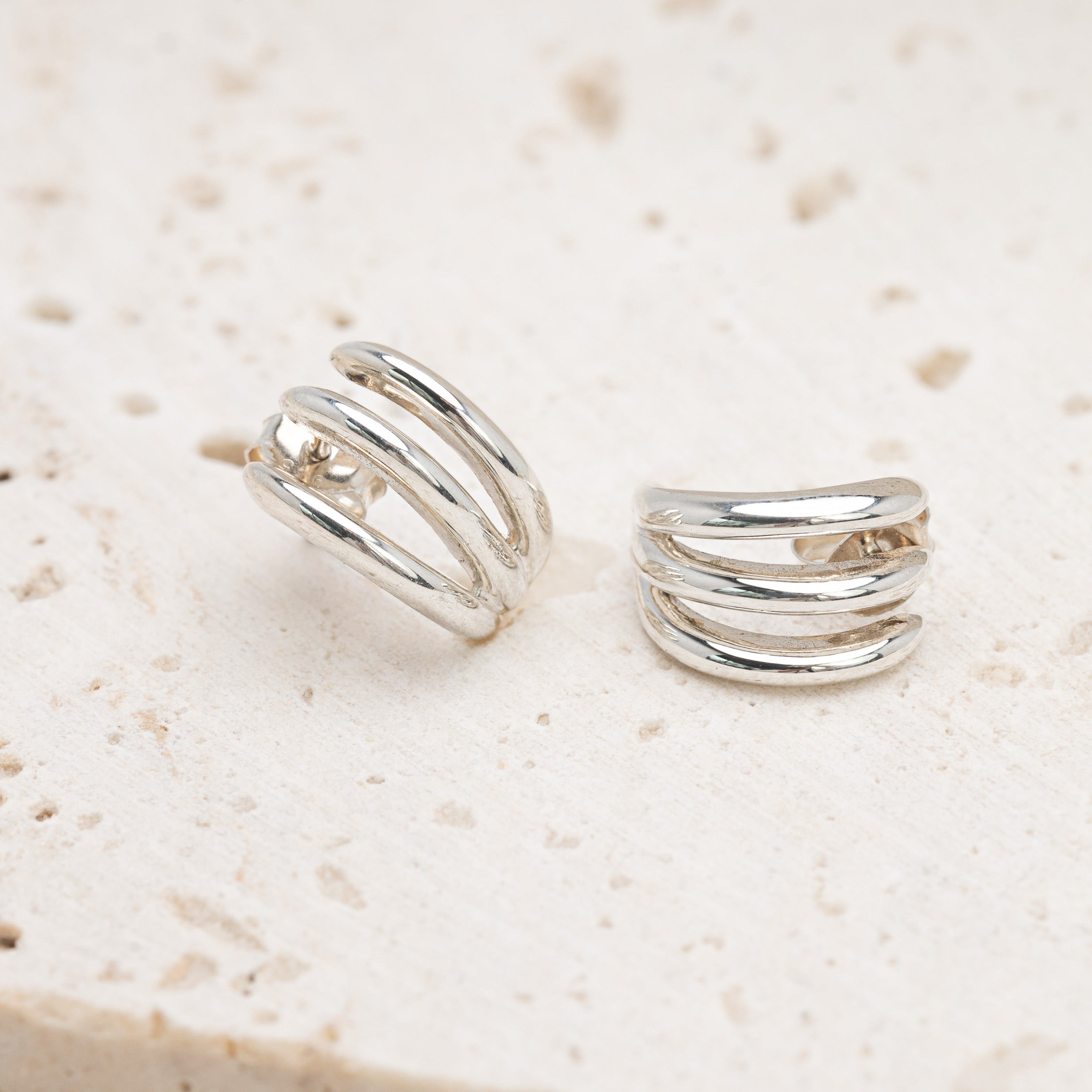 Our range of sterling silver earrings includes both effortless and uncomplicated styles, as well as our signature bold pieces. If you have more than one piercing, consider pairing up our earrings or mix and matching different styles. We recommend wearing a mix of studs with drops or hoops, or double stacking two different sizes for maximum effect!
