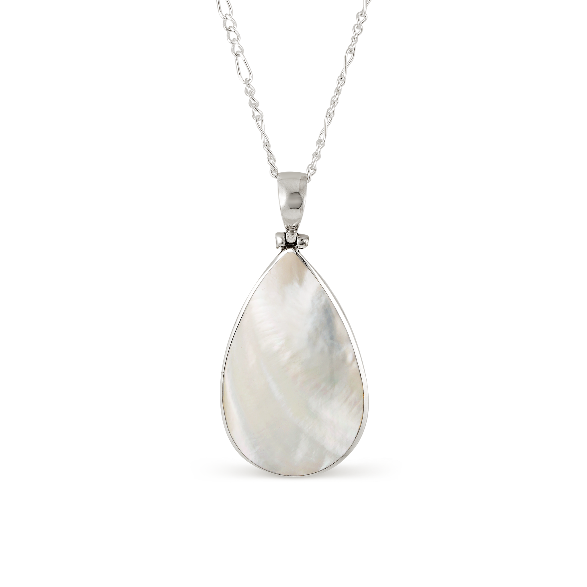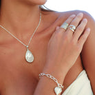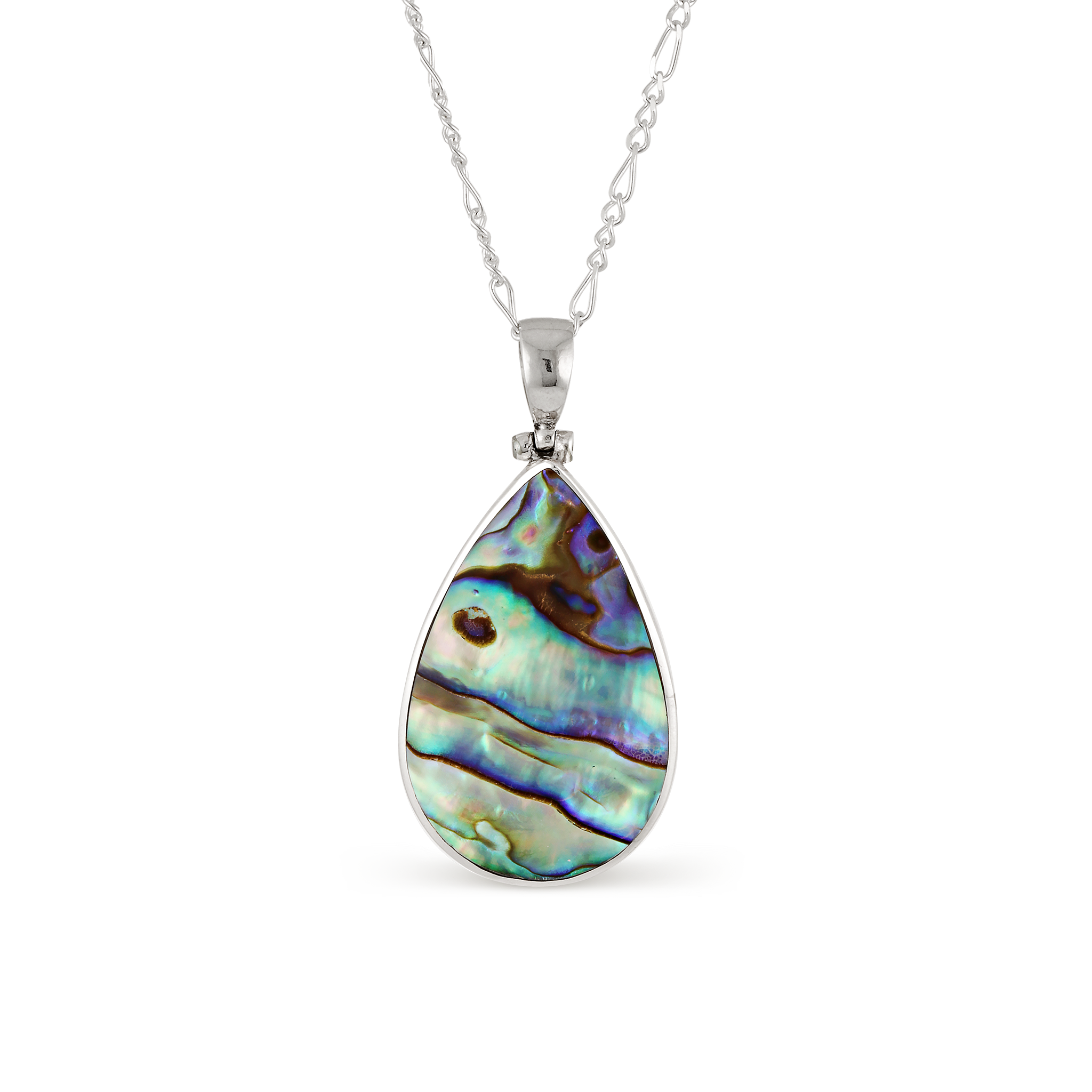 Two looks, one timeless design. The Reversible Seaside Necklace features a large teardrop-shaped pendant that can be worn either way — with luminous paua shell on one side and a soft pear finish on the other. A true statement piece that transitions effortlessly from day to night, and pairs perfectly with the matching Reversible Seaside Bracelet.