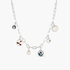 Carry the spirit of the sea wherever you go with our Seashell Charm Necklace. Suspended from a sterling silver chain, this playful piece features three ocean treasures: the swirling eye of the Shiva Shell, the striking pattern of the Cone Shell, and the iridescent beauty of Paua Shell. Together, they create a charm necklace that feels both whimsical and meaningful — a keepsake of the ocean’s wonders. Pair it perfectly with the matching Seashell Charm Bracelet for a complete seaside set.