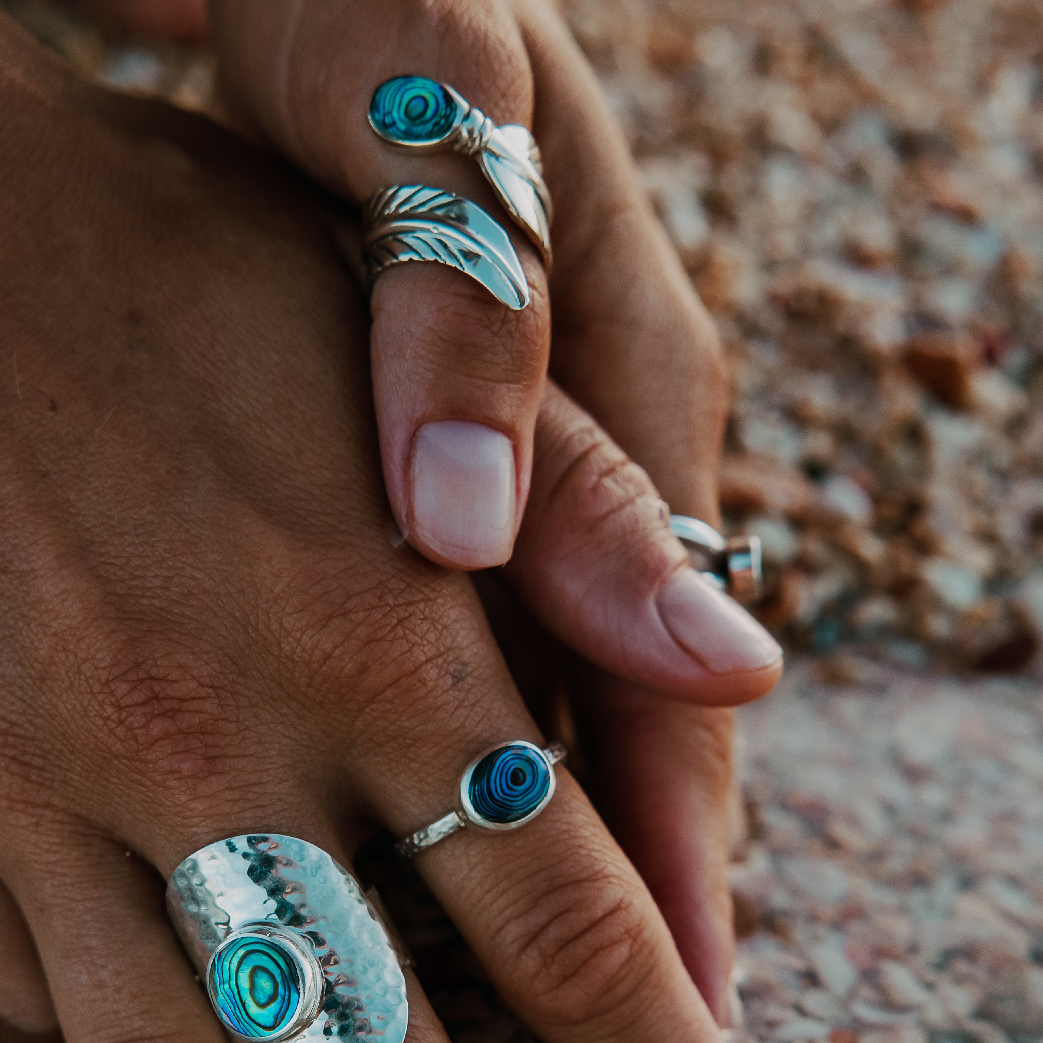Some of our sterling silver rings feature gorgeous semi-precious gemstones, like our faves Turquoise and Larimar! Others hero the gems of the ocean, shells and pearls. To find the perfect fit, learn how to measure your ring size on our blog.