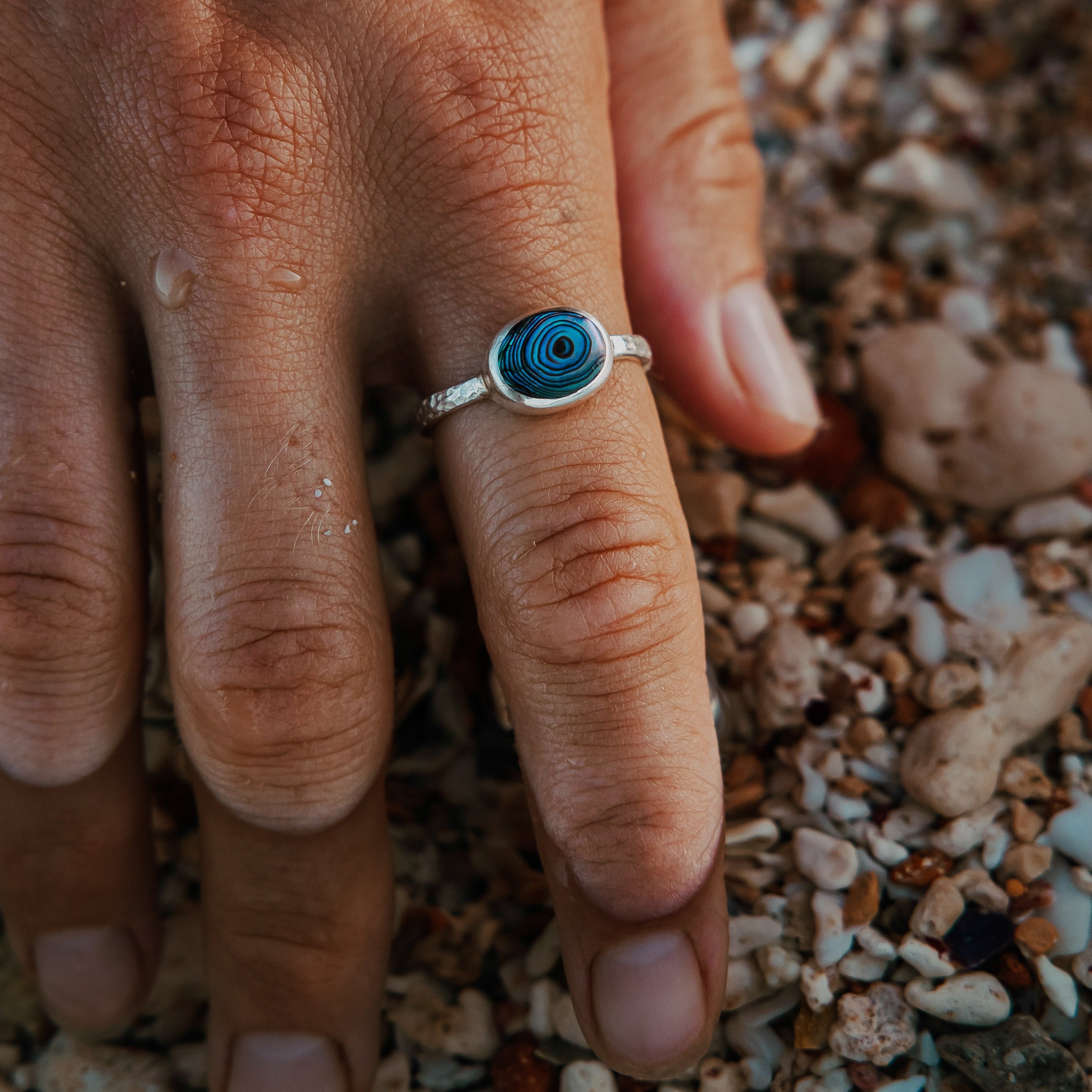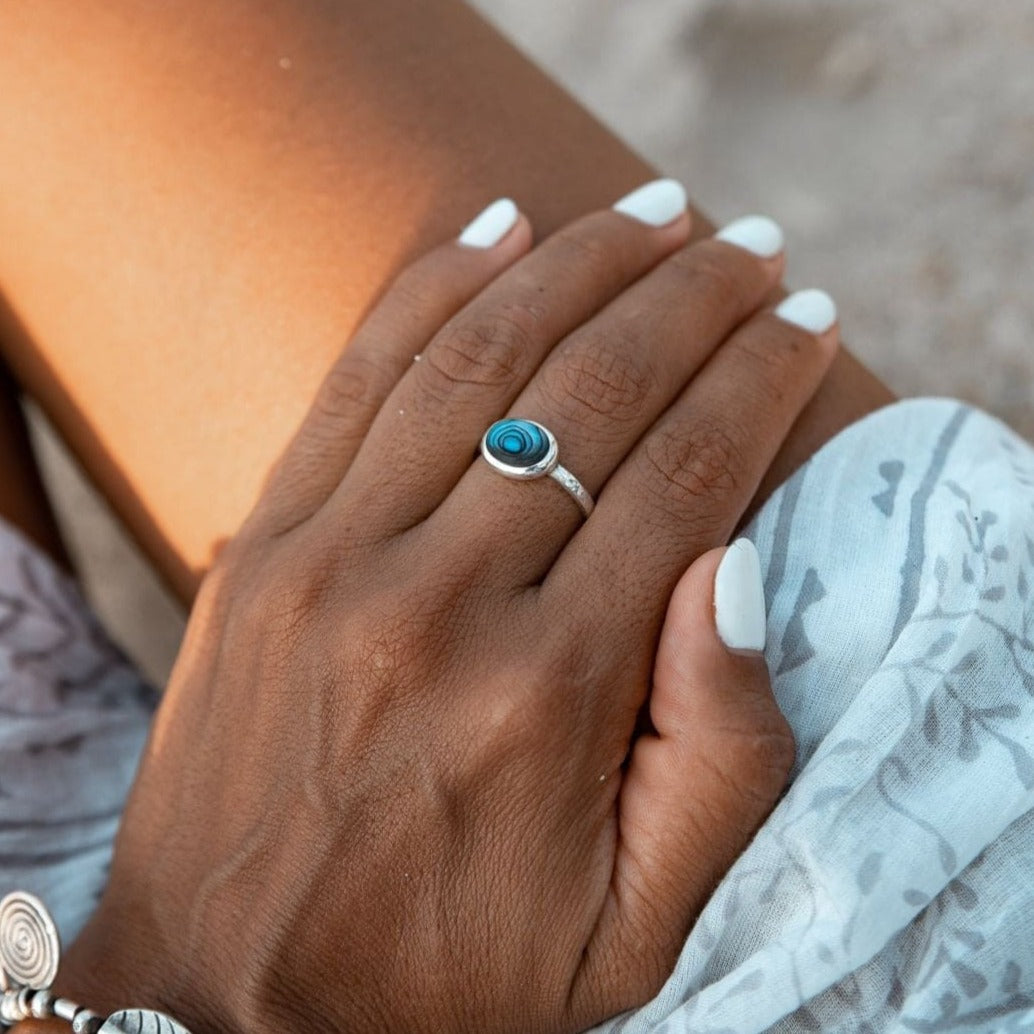Dive into the captivating beauty of our Colours of the Sea Ring. Crafted from sterling silver and adorned with iridescent paua shell, this ring embodies the enchanting hues of the ocean. The natural variations in the shell's colors make each piece unique, symbolizing the ever-changing sea. Let the mesmerizing colors of the sea embrace your fingers with this exquisite ring. Enhance your style and connect with the ocean's boundless spirit whenever you wear the Colours of the Sea Ring.