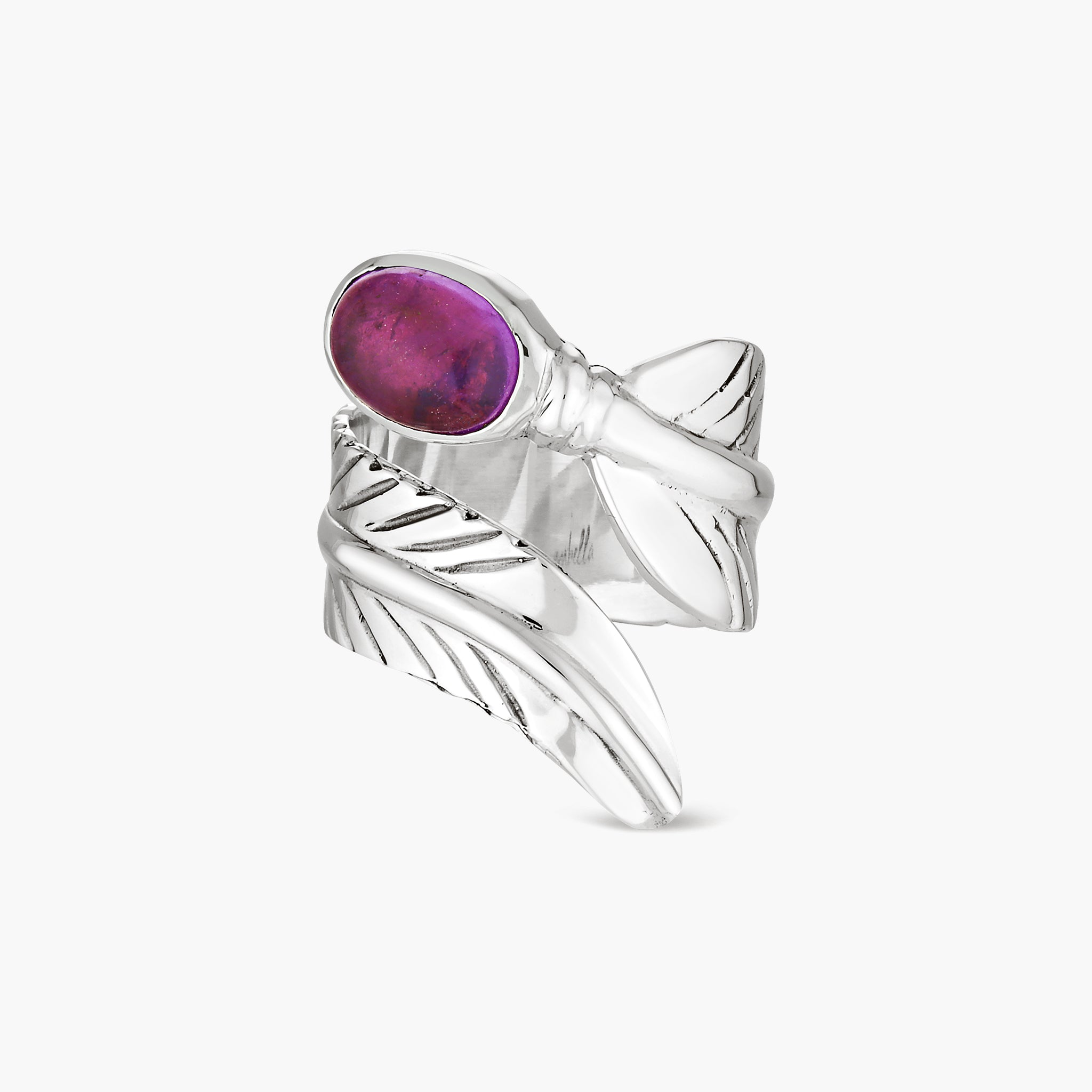 The Amethyst Feather Wrap Ring can be adjusted to fit on any finger.