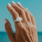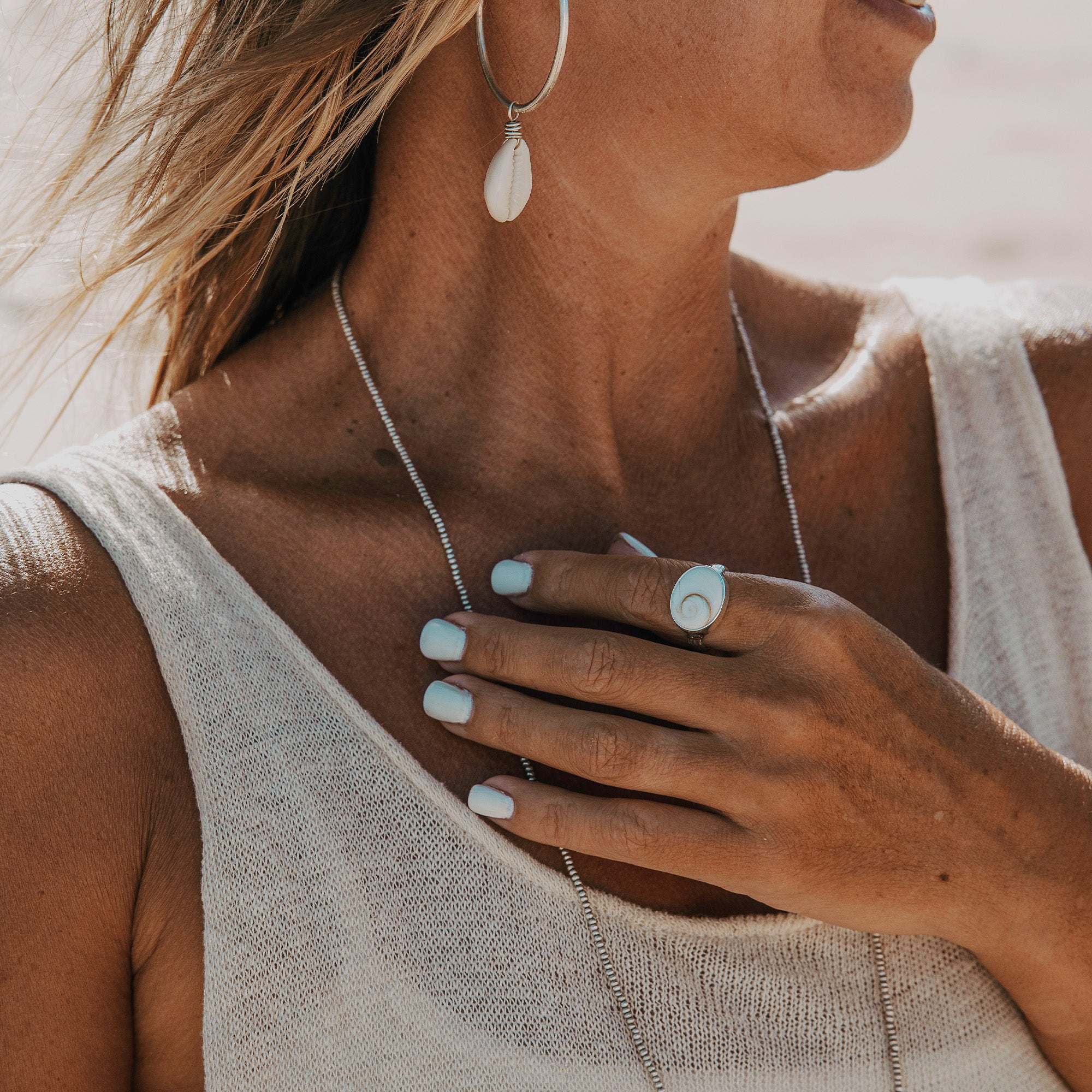 Dive into the beauty of the sea with our Ocean Crown Shiva Ring. The hand-hammered sterling silver band adds a touch of artisanal charm, while the delicate Shiva Shell evokes the tranquil essence of ocean waves. Let the rhythmic motion of the sea inspire your style as you adorn yourself with this captivating ring. Embrace the coastal allure and make a statement with the Ocean Crown Shiva Ring.