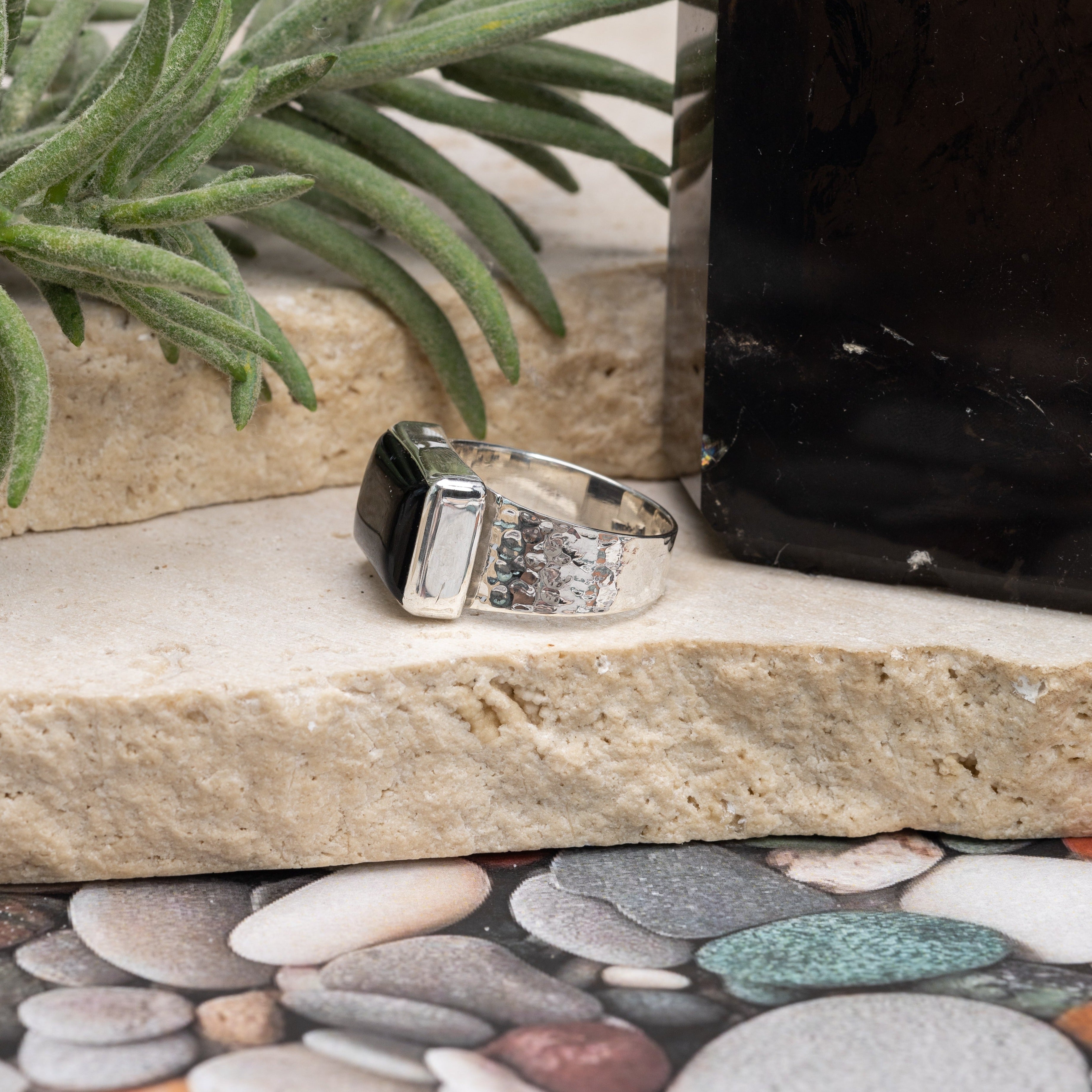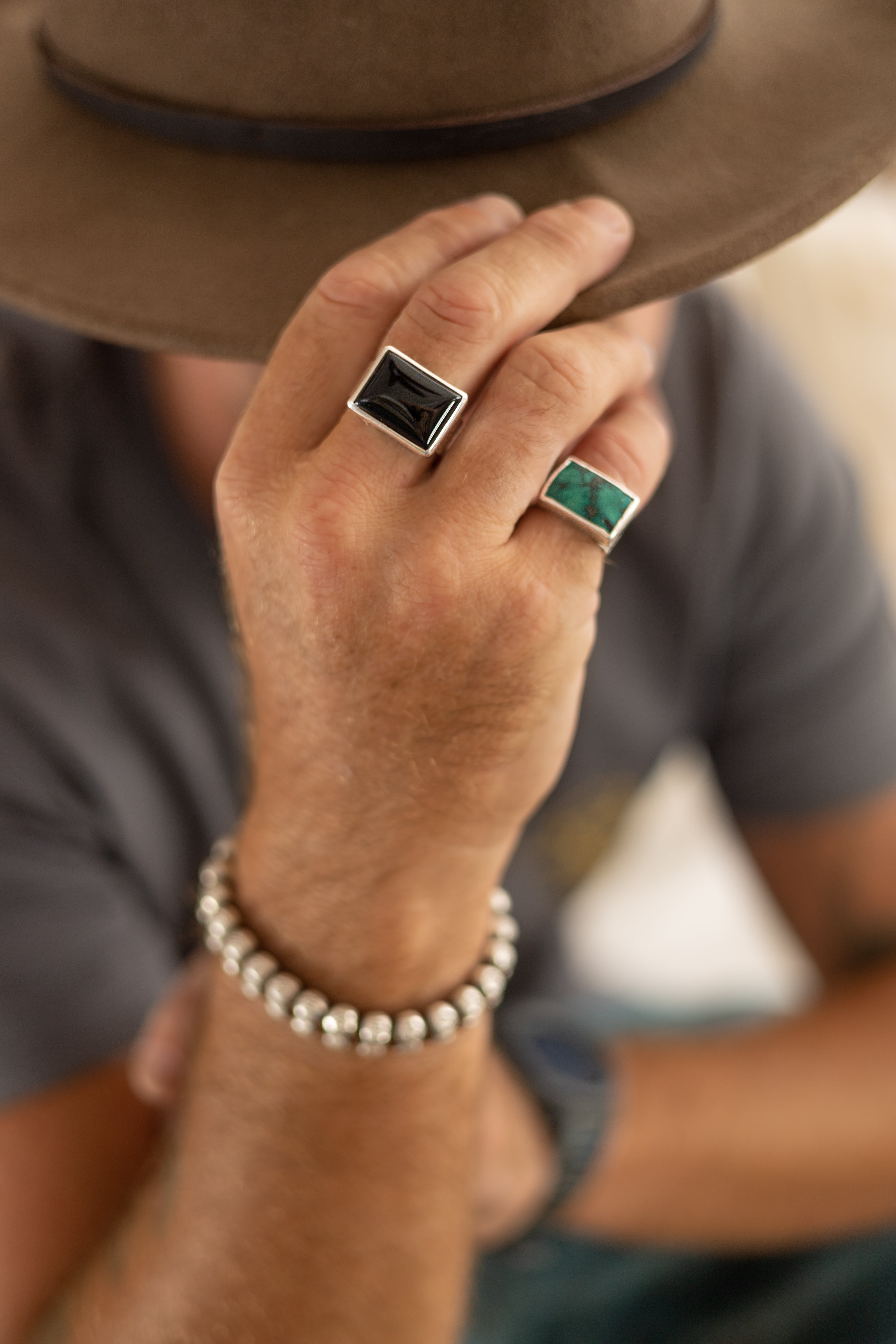 Black Onyx is a powerful stone that protects the mind and the body from negative energy. Our Ula Black Onyx Rings features a geometric design with solid lines and a bolder design.