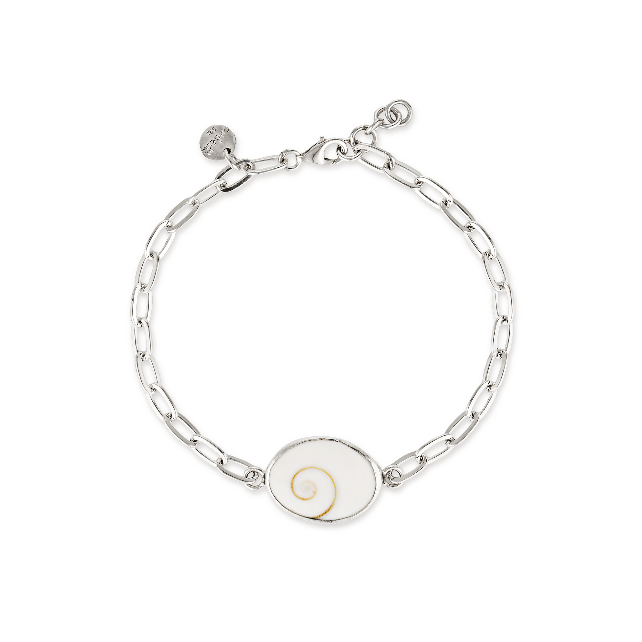 Carry the ocean’s energy with you in the Shiva Sunkiss Bracelet. A natural Shiva Shell, set in sterling silver, rests on a beautifully balanced chain — feminine yet bold, delicate yet strong. Known for its protective and transformative properties, the Shiva Shell brings both beauty and meaning to this piece. With its luminous spiral and chunky sterling silver links, this bracelet is a statement of seaside elegance, made to be treasured every day.