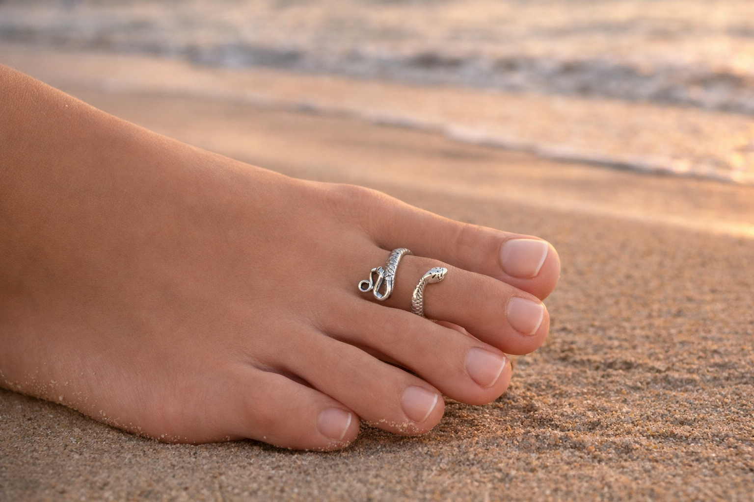 Toe rings are most comfortable to wear on your second or third toe. Wear your toe rings barefoot at the beach or show them off with a pair of your favourite sandals.