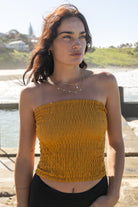 100% Rayon, handmade elasticated bandeau top. Hand wash in cold water.