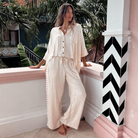 The perfect mix and match, oversized, everyday shirt. Featuring a button down front, with a tapered shorter front and longer back, 3/4 sleeve.