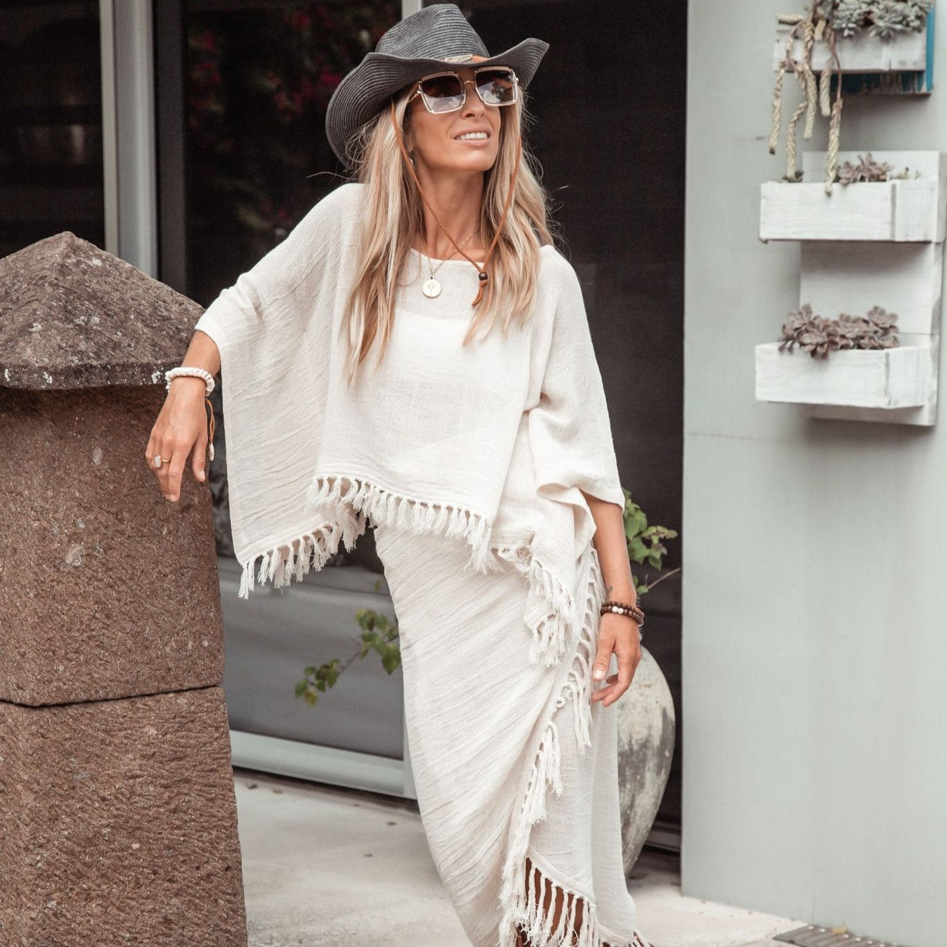 A loose fit style top featuring an open shape and a fringe hem detail all in our sustainable Ramie Cotton, making this breathable and lightweight.