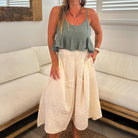 Discover effortless styling with the Maya Top in khaki green. Crafted from soft and breathable, double cloth cotton with adjustable spaghetti straps and peplum silhouette. This crop top offers a fitted bust with a frill detail. We love this worn with a relaxed fit pant.