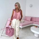 The Opal Top - Rosa Pink top is a relaxed fit camisole with ruched elastic shoulder straps and a curved neckline.