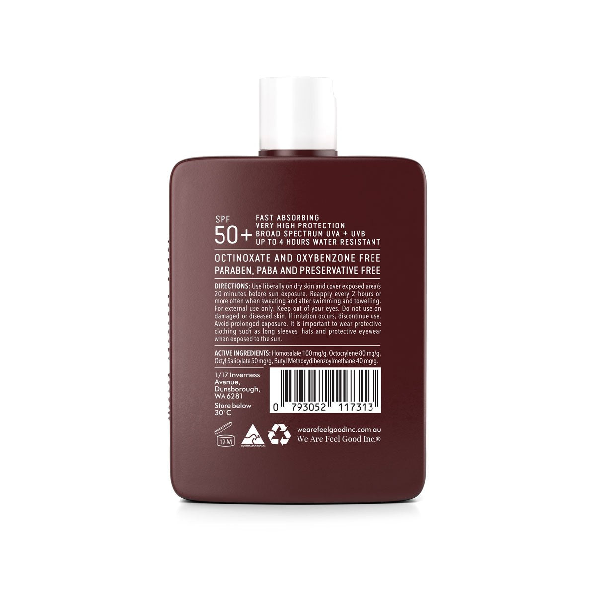 We Are Feel Good Inc is Australian made and owned – tested to hold up in the toughest of climates. Paraben, oxybenzone, octinoxate and PABA free. This sunscreen nourishes and supports the skin without compromising sun protection capabilities with vitamin e and aloe vera, chosen for their antioxidant, hydration and nourishing properties.