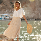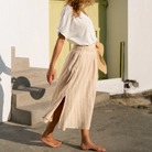 The Chania Skirt is crafted from incredibly soft, natural cotton gauze that flatters the figure with a forgiving A-line silhouette. A fully smocked waistband adds flexibility and all-day comfort, making it easy to slip on and feel good. Light, airy, and made to move with you, it’s the perfect companion for travel, relaxed days, and rediscovering effortless style.