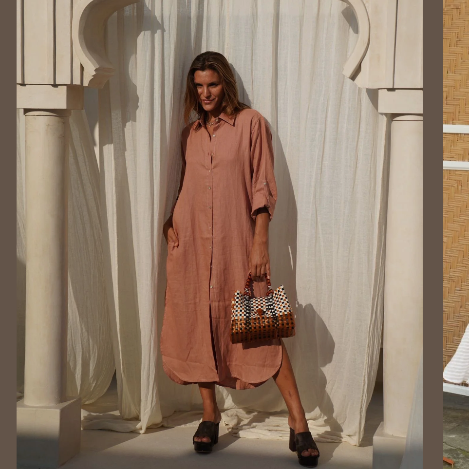 The Maggie is an effortless, casual yet classy dress perfect for days where you need to cover up from the sun and keep cool. This style features unique, contrast stitching, clean, crisp lines with a collared, button down look. The rounded hem softens the cut into your leg line, and side slits help further expose that leg line.