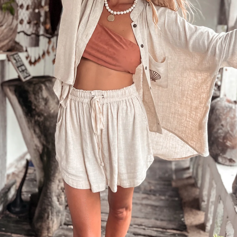 Amalfi Shorts - Beige Woven