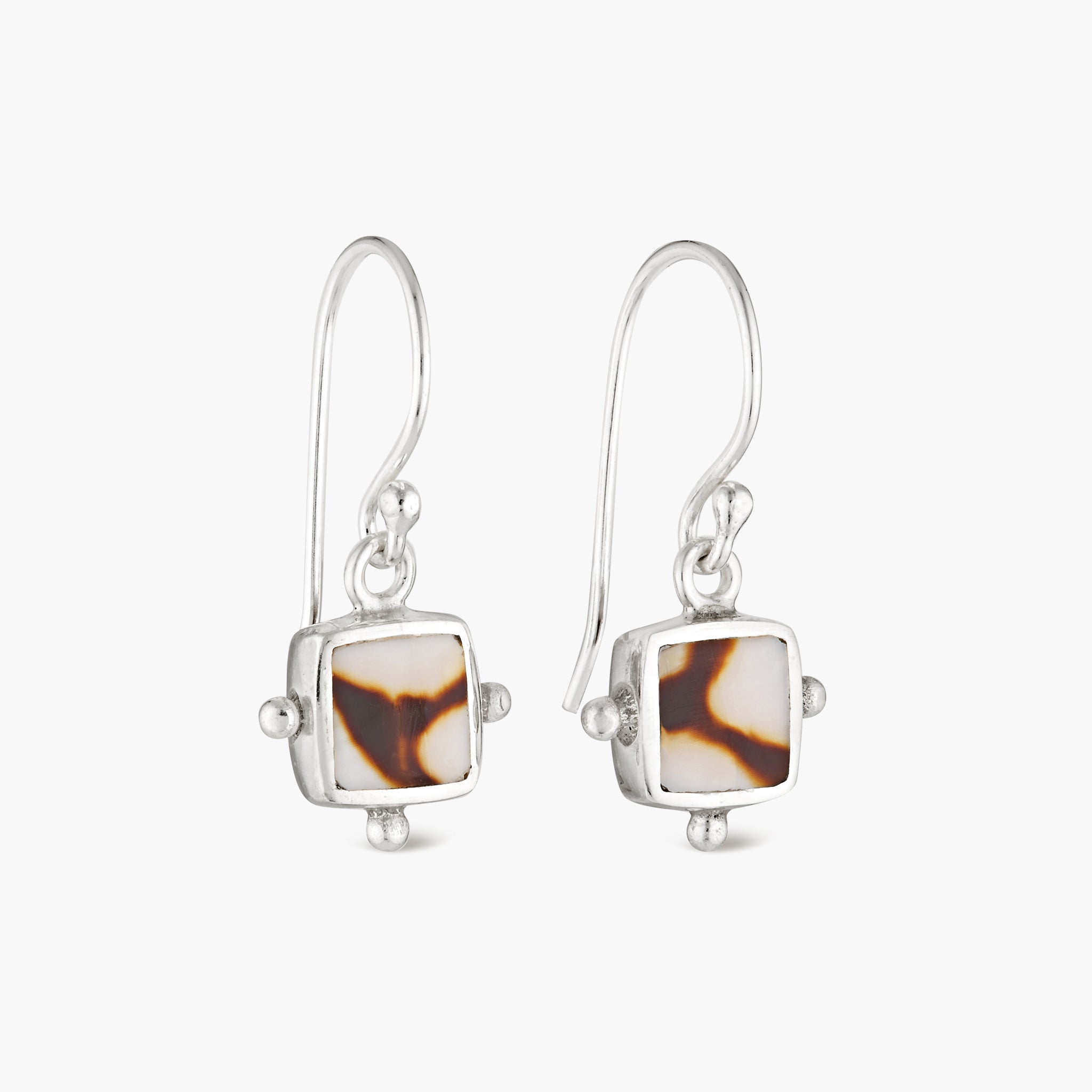 Ocean-inspired and effortlessly chic, the Cone Shell Nalu Drops feature a square cone shell set in sterling silver with delicate sea bubble detailing. Perfect for everyday wear or layering, they pair beautifully with the Cone Shell Indigo Bracelet for a coordinated, seaside-inspired look.