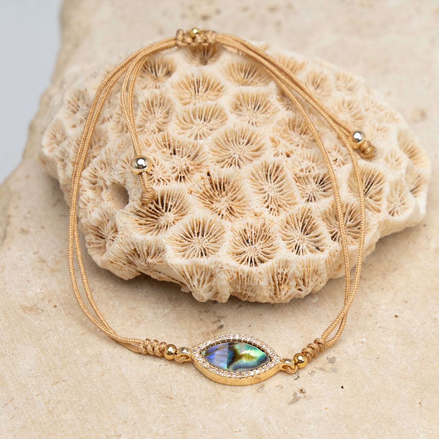 Embrace tropical vibes with the playful Eye of Paua Bracelet, designed for our island-loving dreamers. Featuring an eye shaped pendant with paua shell, surrounded by zirconia's, this adjustable bracelet is a celebration of carefree, sun-soaked days. Perfect for stacking or wearing solo, this piece brings a touch of coastal charm to your look, effortlessly blending boho elegance with island-inspired style. We're wearing ours with the Heart Island Bracelet & the Cowrie Island Bracelet in both colourways.