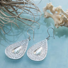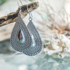 Hand crafted and pressed Sterling Silver tear drop earrings.