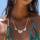 Capture the essence of the beach with our Pippies Beach Necklace - Short. Handcrafted and handstamped with Hilltribe Silver charms and beads, this necklace embodies the carefree spirit of coastal living. The polywax cotton cord with an adjustable bead allows for different lengths, ensuring a perfect fit. Let the Pippies Beach Necklace - Short be a symbol of beachy bliss, adding a touch of seaside charm to your everyday style.